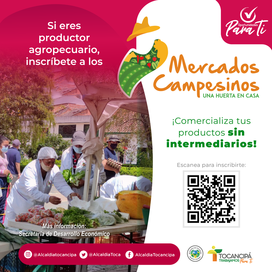 Si eres productor agropecuario y quieres comercializar tus productos sin intermediarios participa en los Mercados Campesinos.