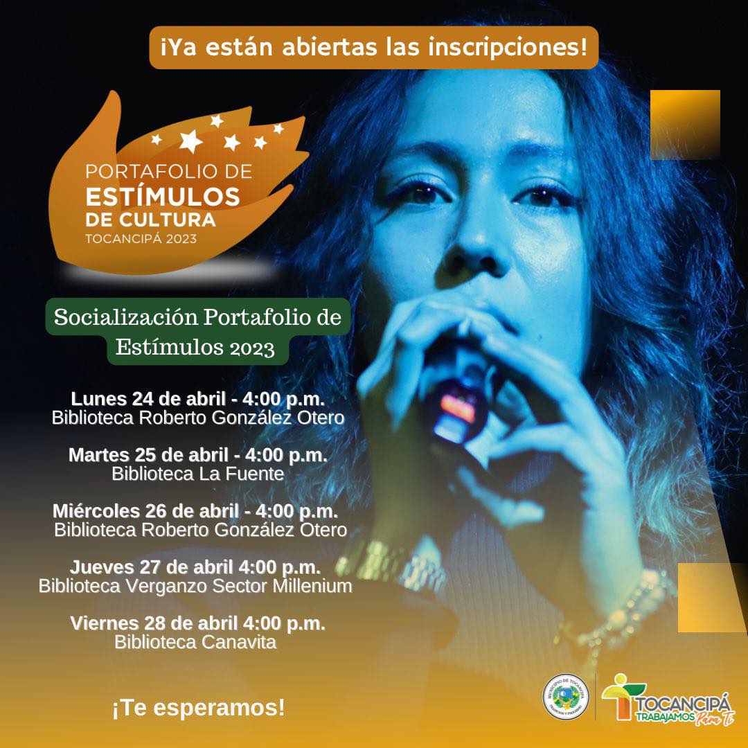 Conoce todos los detalles de nuestro Portafolio de Estímulos 2023 en las diferentes socializaciones que se llevarán a cabo del 24 al 28 de abril en nuestras diferentes bibliotecas.