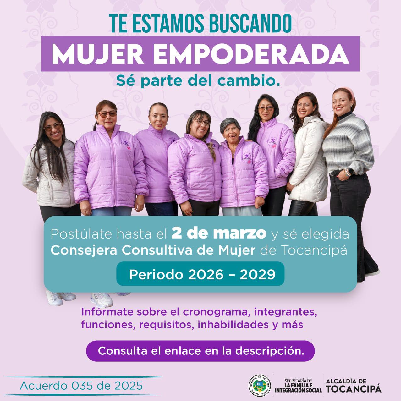 #Familia | ¡Postúlate y sé elegida Consejera Consultiva de Mujer de Tocancipá! Periodo 2026 – 2029.
