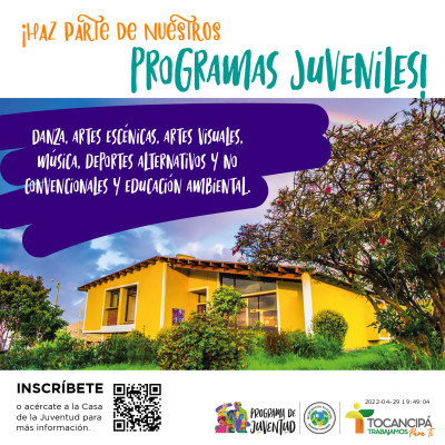 Este año nuestro programa de Juventud regresa con una completa oferta en programas culturales, artísticos, profesionales y ambientales. Deseamos que los jóvenes fortalezcan sus talentos y que la juventud retome su Casa.