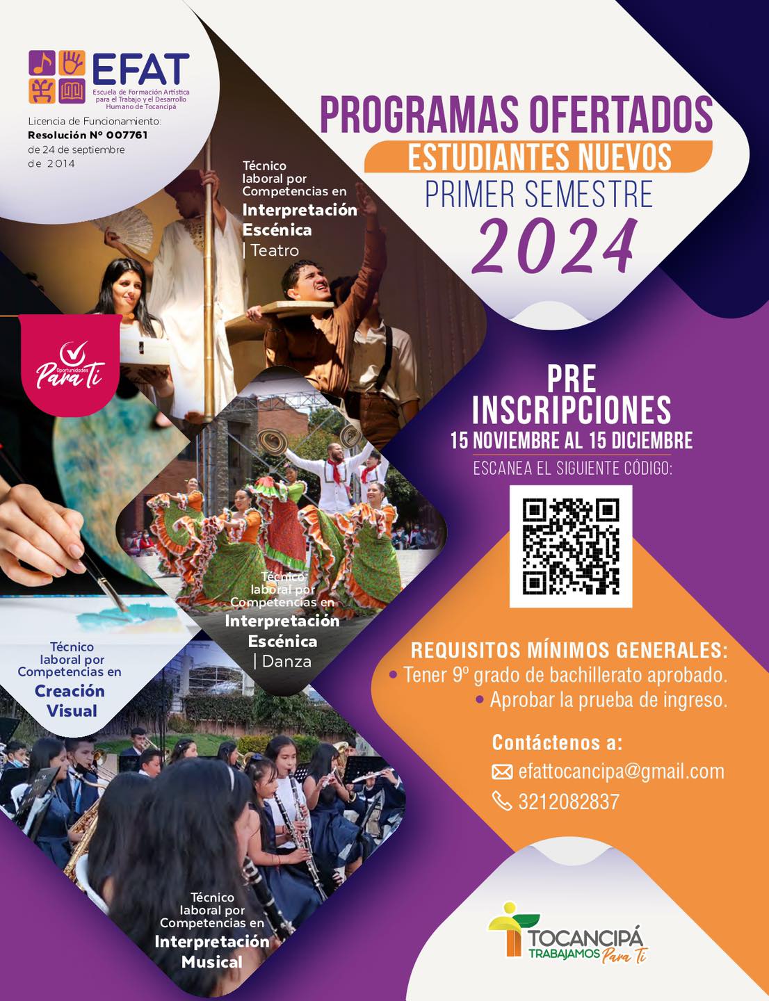 ¡Convocatoria para estudiantes nuevos del Programa Técnico Laboral por Competencias de la EFAT 2024-1 !