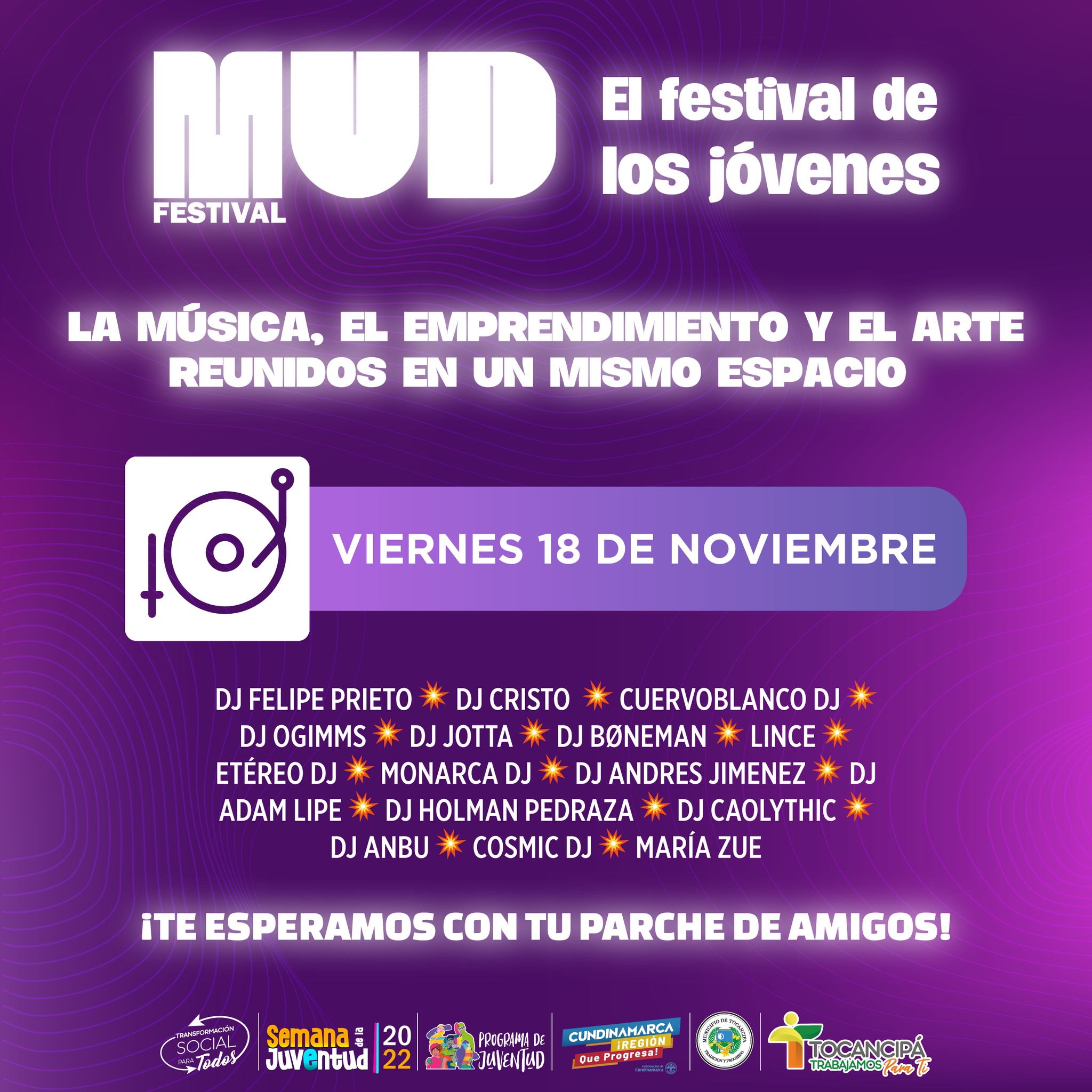Con el apoyo de la Gobernación de Cundinamarca y Electro Cundinamarca, este viernes inicia el MUD FESTIVAL con una tarde de Dj´s.