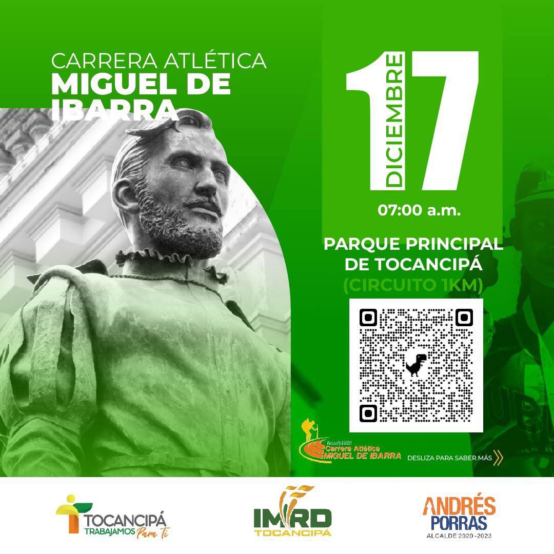 La Administración Municipal 𝘛𝘰𝘤𝘢𝘯𝘤𝘪𝘱á, 𝘛𝘳𝘢𝘣𝘢𝘫𝘢𝘮𝘰𝘴 𝘗𝘢𝘳𝘢 𝘛𝘪 y el Instituto Municipal de Recreación y Deporte de Tocancipá invitan a participar en la 𝐂𝐚𝐫𝐫𝐞𝐫𝐚 𝐀𝐭𝐥𝐞́𝐭𝐢𝐜𝐚 𝐌𝐢𝐠𝐮𝐞𝐥 𝐝𝐞 𝐈𝐛𝐚𝐫𝐫𝐚 que se llevará a cabo el día 17 𝐝𝐞 𝐝𝐢𝐜𝐢𝐞𝐦𝐛𝐫𝐞 𝐝𝐞 2022.