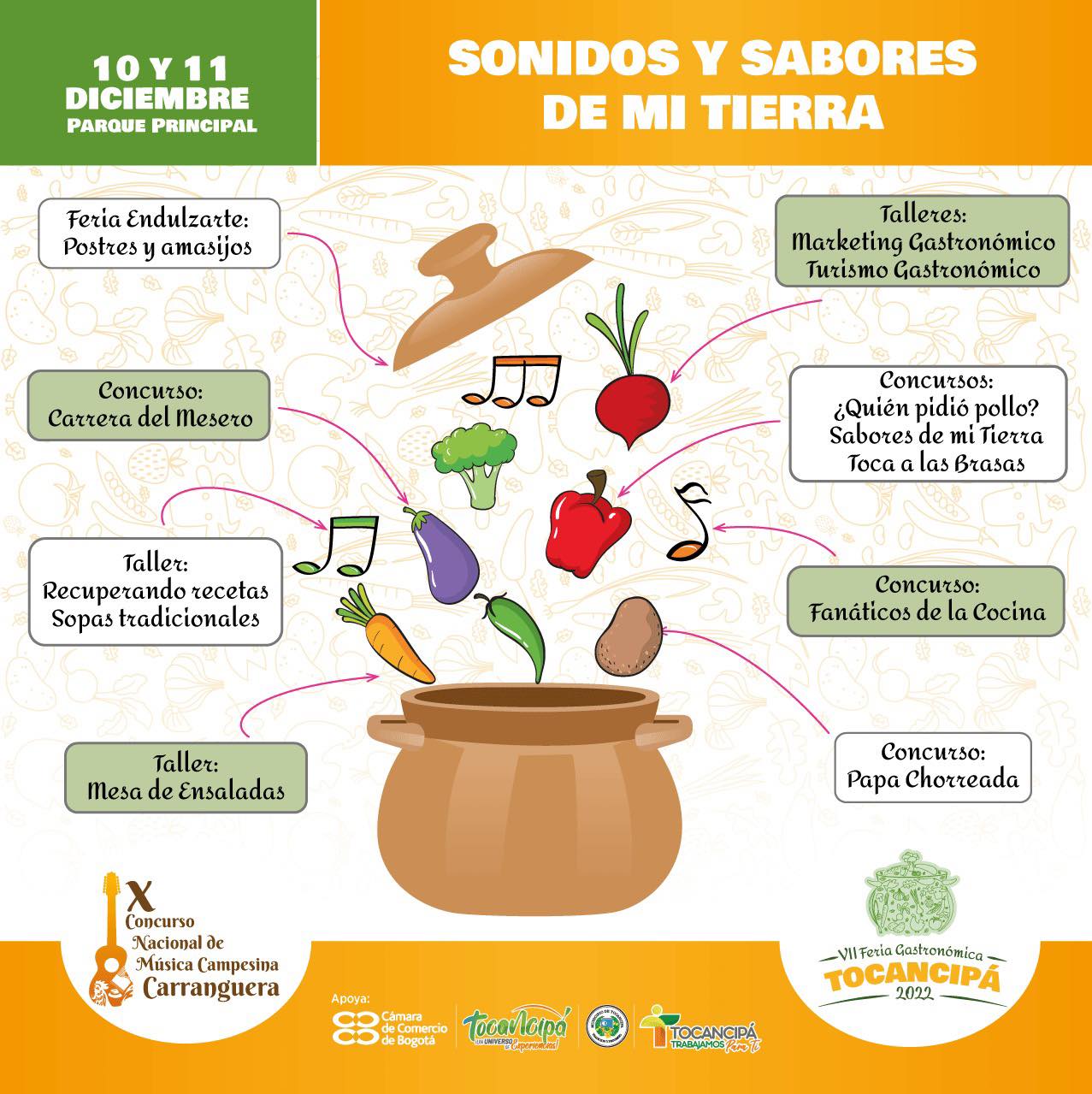 ¡Prográmate para vivir de un fin de semana lleno de actividades. El próximo 10 y 11 de diciembre disfruta de VII la Feria Gastronómica Tocancipá 2022 y del Concurso Nacional de Música Campesina y Carranguera!