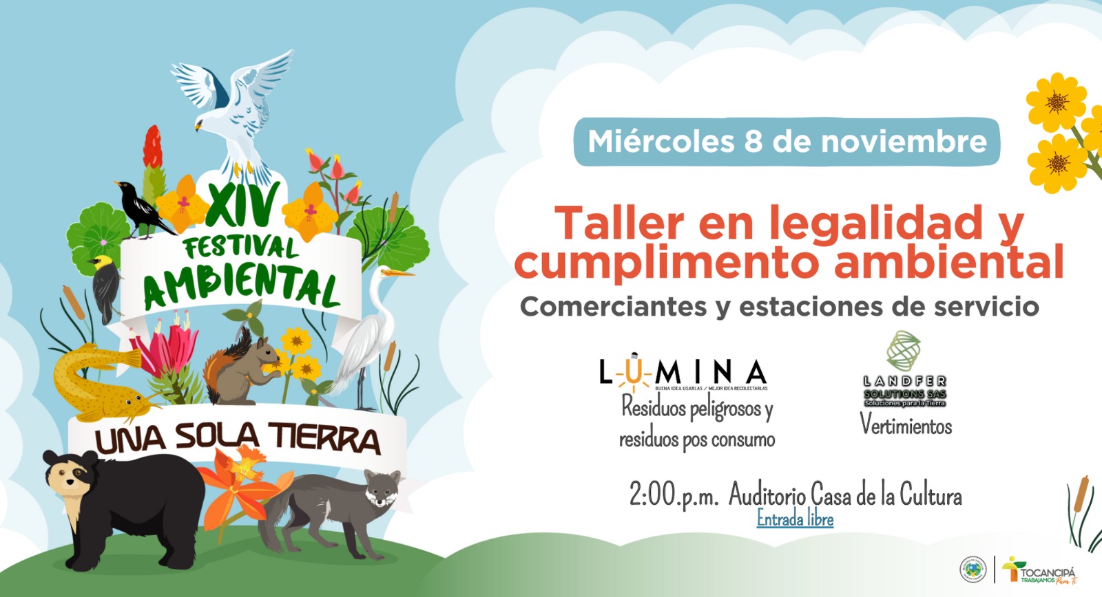 La Secretaría de Ambiente de Tocancipá los invita a participar del Taller de legalidad y cumplimiento ambiental del Festival Ambiental que dictarán las empresas Lumina y Ladfer vertimientos.