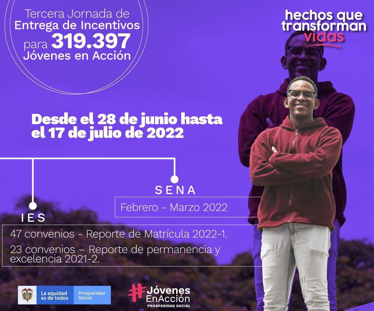 El Programa Jóvenes en Acción informa que realizará la tercera jornada de incentivos desde el pasado 28 de junio hasta el próximo 17 de julio de 2022.