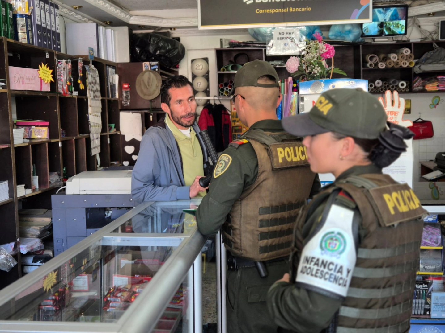 La Policía Comunitaria y los Auxiliares de Policía trabajaron con el sector Comercial, específicamente en la carrera 4 con calle 10, para entregar volantes con tips de información preventiva y lograr una articulación que permita mejorar las acciones de seguridad.