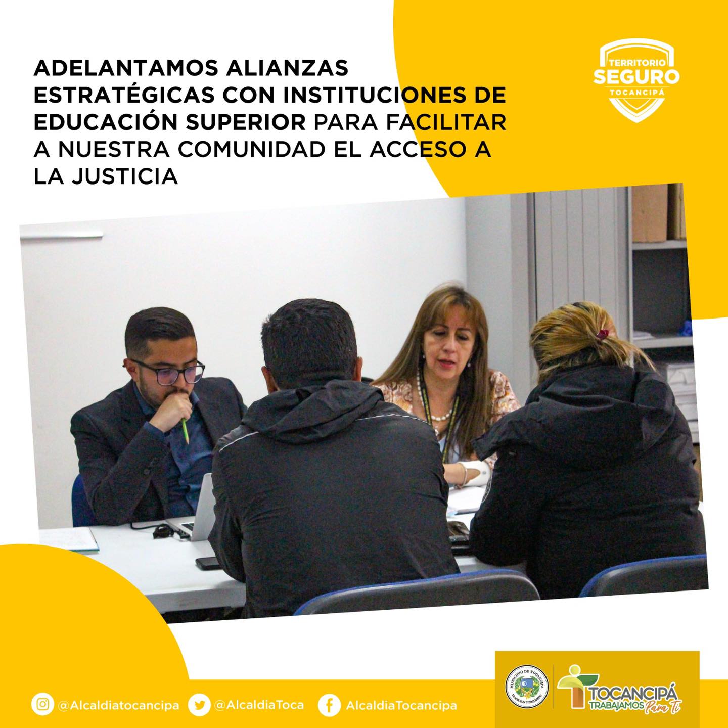 Con el propósito de facilitar el acceso a la justicia a la población y de promover espacios de resolución pacífica de conflictos, el programa Casa de Justicia de Tocancipá viene desarrollando diferentes alianzas estratégicas con instituciones de educación superior.