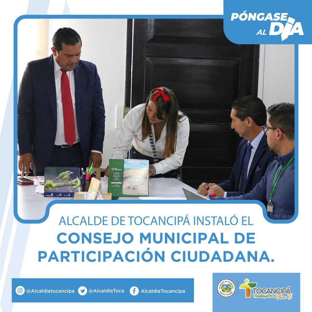 El miércoles 1 de marzo, el alcalde de Tocancipá, Andrés Porras Vargas, instaló el primer Consejo Municipal de Participación Ciudadana y posesionó a cada uno de sus integrantes, quienes representan diferentes gremios y grupos poblacionales como organizaciones sindicales, Consejo Municipal de Planeación, sector productivo y empresarial, organizaciones de personas con discapacidad y organizaciones de mujeres entre otros.