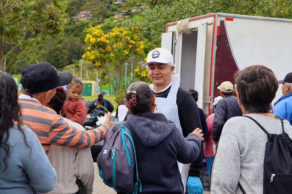 Foto del alcalde de Tocancipá entregando raciones de proteína