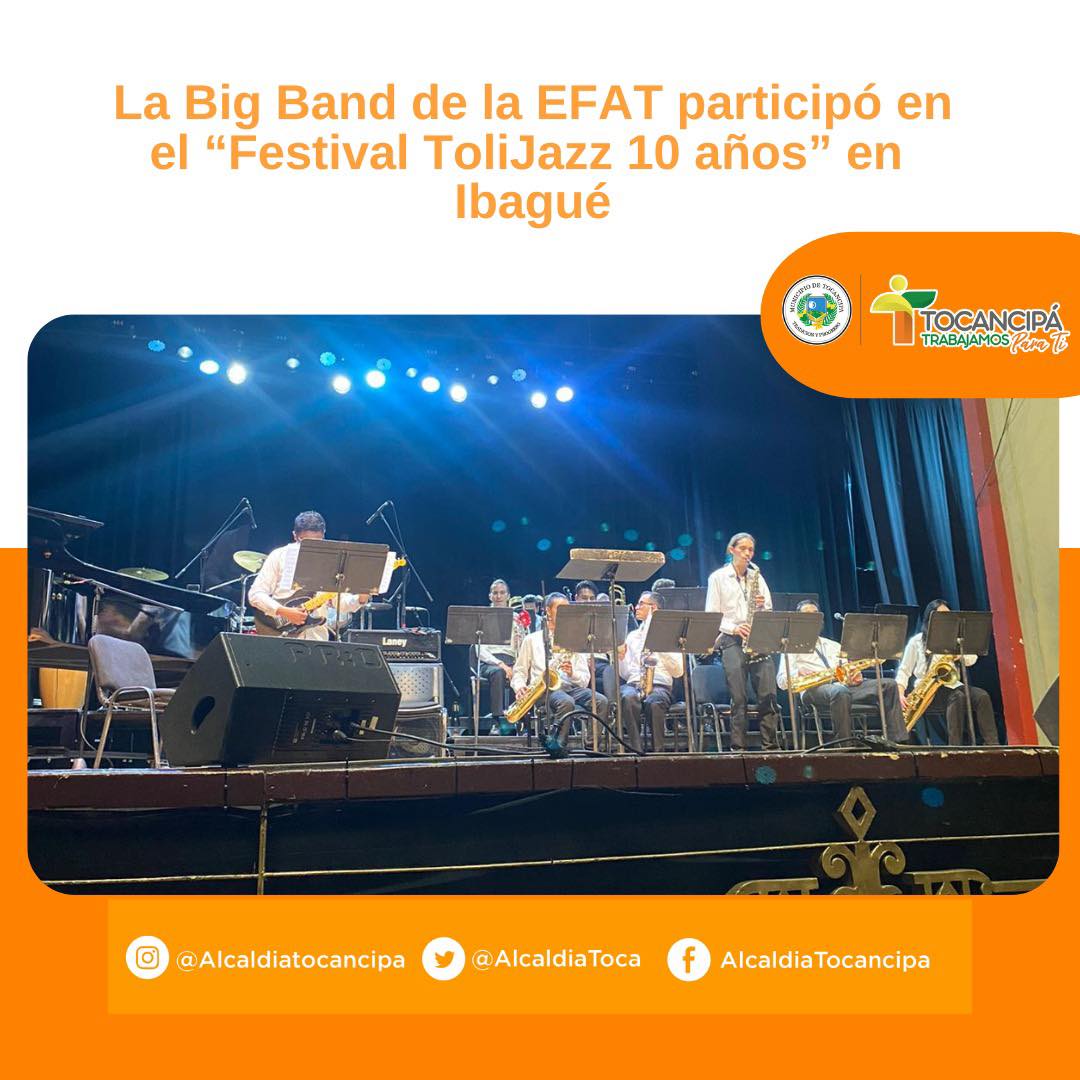 La Big Band de la EFAT participó en el Festival de Jazz “ToliJazz”- en la ciudad de Ibagué (Tolima) en el marco de la celebración de los 10 años de este Festival. El cual contó con la participación del Maestro trompetista Arturo Sandoval, quien realizó un master class y un gran concierto.