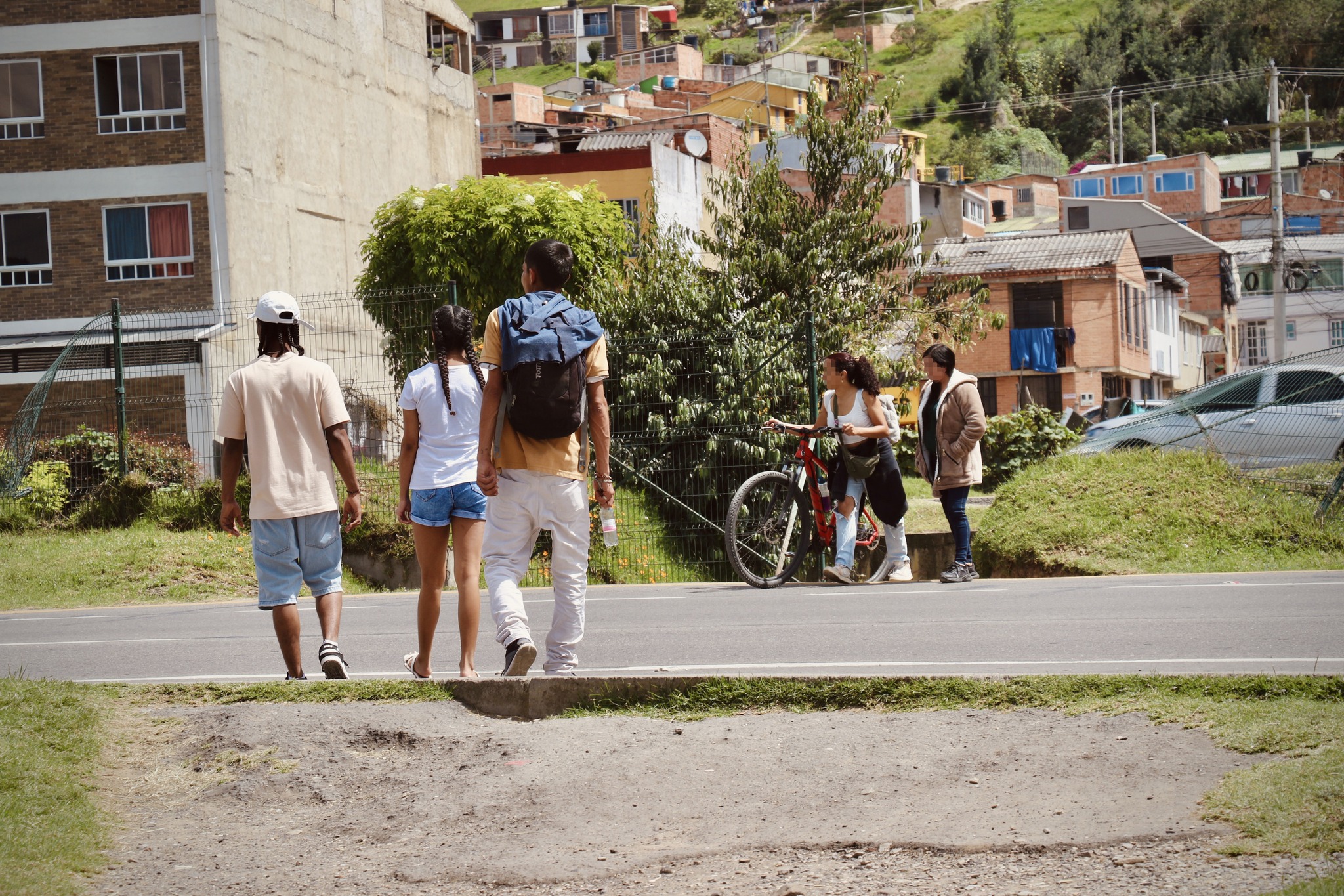 Fotografía de personas cruzando el paso ilegal de una vía nacional