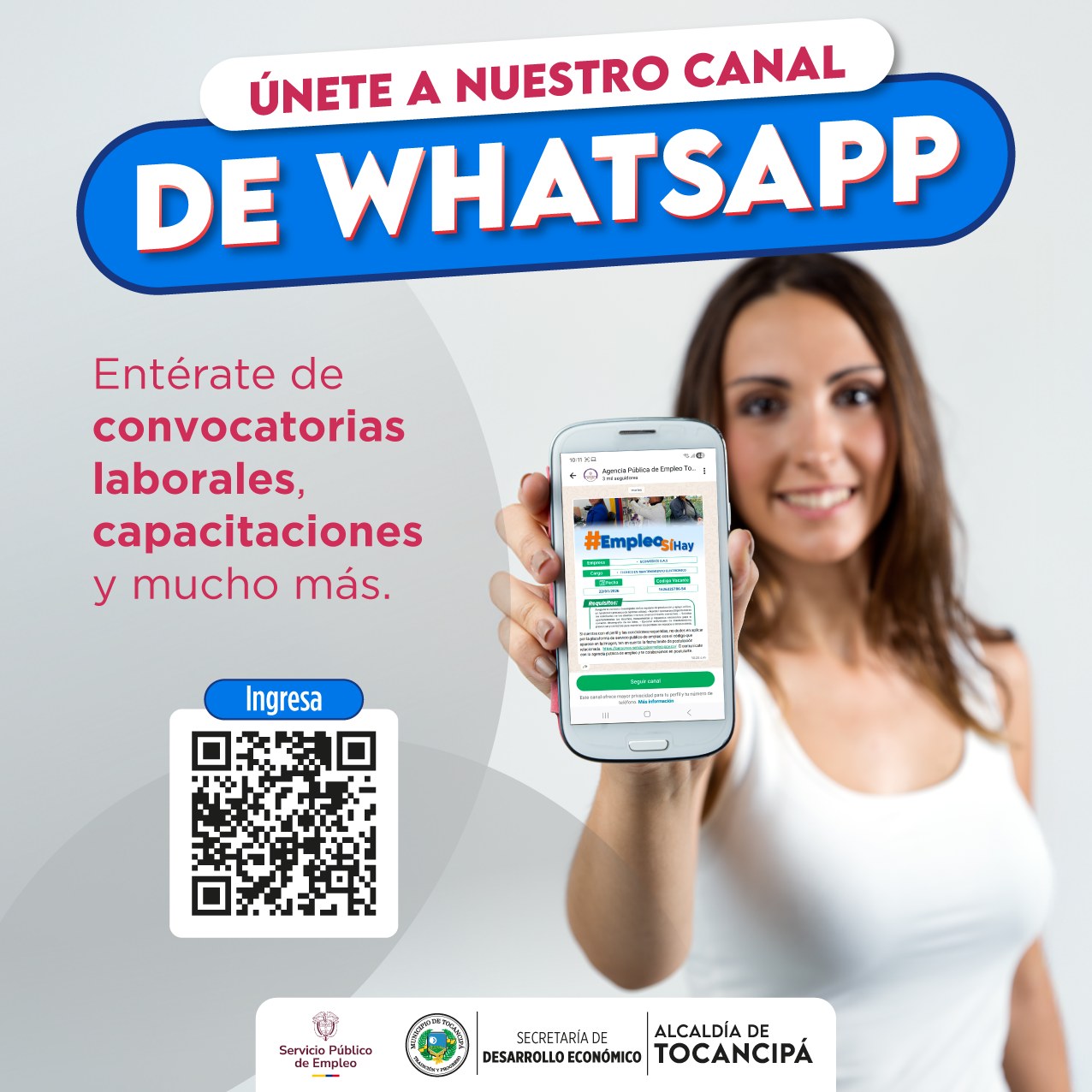 #Empleo | Nuestro canal de WhatsApp sigue creciendo. 3.500 personas ya reciben información sobre empleo y formación de nuestra Agencia Pública de Empleo de Tocancipá.