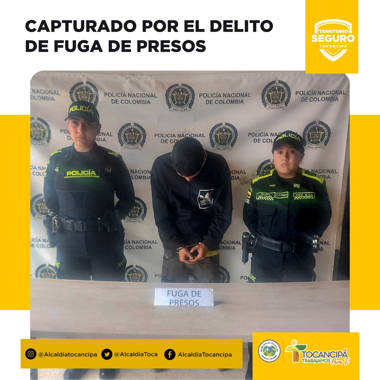 En las últimas horas la Policía de Tocancipá realizando sus labores de patrullaje capturo a un sujeto, quien transitaba en una motocicleta sin placa por el sector de Juancho Pola, al requerir su documentación, indica no tenerla y al cotejar el nombre suministrado en la base de datos de la Policía Nacional se verificó que esté tenía detención domiciliaria.