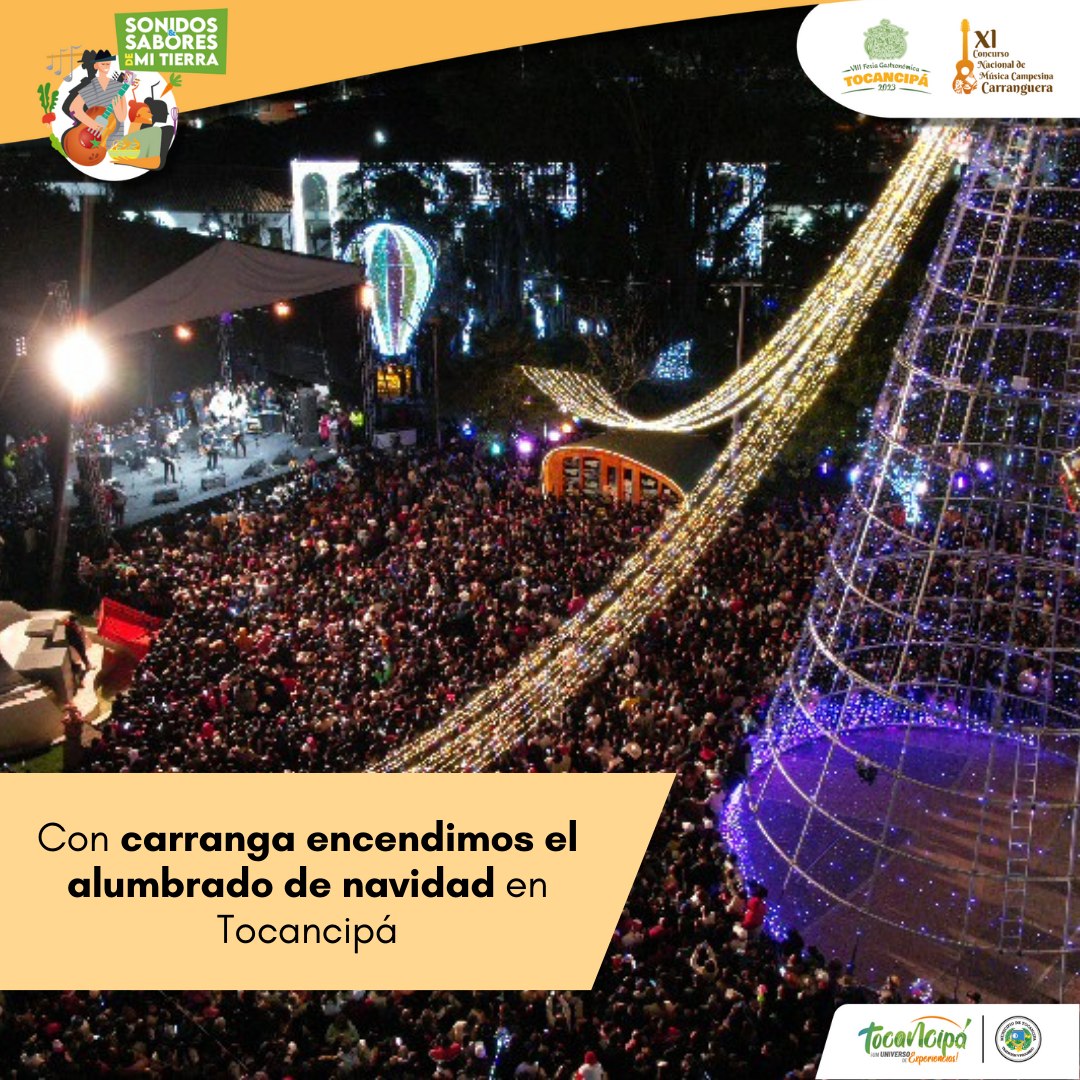 Los tocancipeños pudieron disfrutar del alumbrado navideño con la agrupación los Dotores de la Carranga de Santander que llenaron el Parque Principal y pusieron a bailar a Tocancipá con sus éxitos musicales como: “La de estrato 8”, “Estrellita errante”, “Los lujos de cuñaos”, “Bella y bonilla” y “El Honorable concejal”, lo anterior, después de la premiación de la VIII Feria Gastronómica "Los sonidos y sabores de mi tierra”, el XI Concurso Nacional de Música Campesina Carranguera.