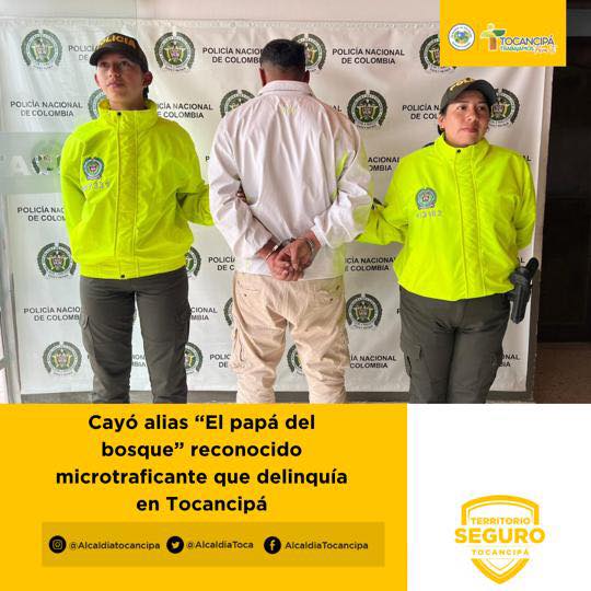 Cayó “El papá del bosque”, un temido delincuente que se dedicaba al expendio de estupefacientes en Tocancipá y Gachancipá. Luego de intensas labores de inteligencia, efectivos de la SIJIN lograron la captura en flagrancia de este sujeto que registra antecedentes por microtráfico, hurto, fuga de presos, lesiones personales, inasistencia alimentaria y daño en bien ajeno.