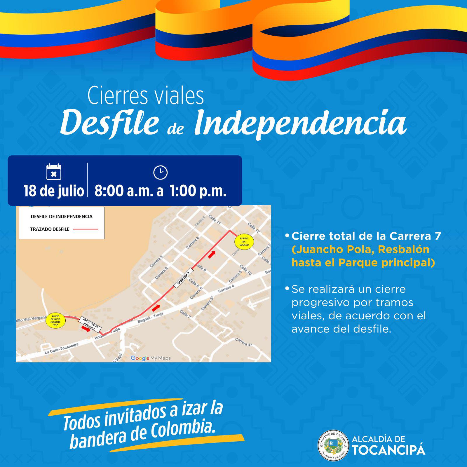 Pieza gráfica cierres viales por la conmemoración del grito de independencia