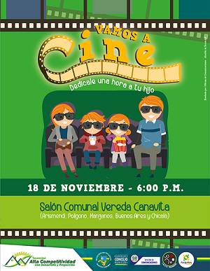 Con el lema “Dedícale una hora a tu hij@”, el alcalde de Tocancipá, Walfrando Forero Bejarano, el Concejo Municipal, el Instituto Municipal de Recreación y Deporte y el presidente de ASOJUNTAS invitan a las familia tocancipeña de la Vereda Canavita y todos sus sectores a disfrutar de una tarde de cine.