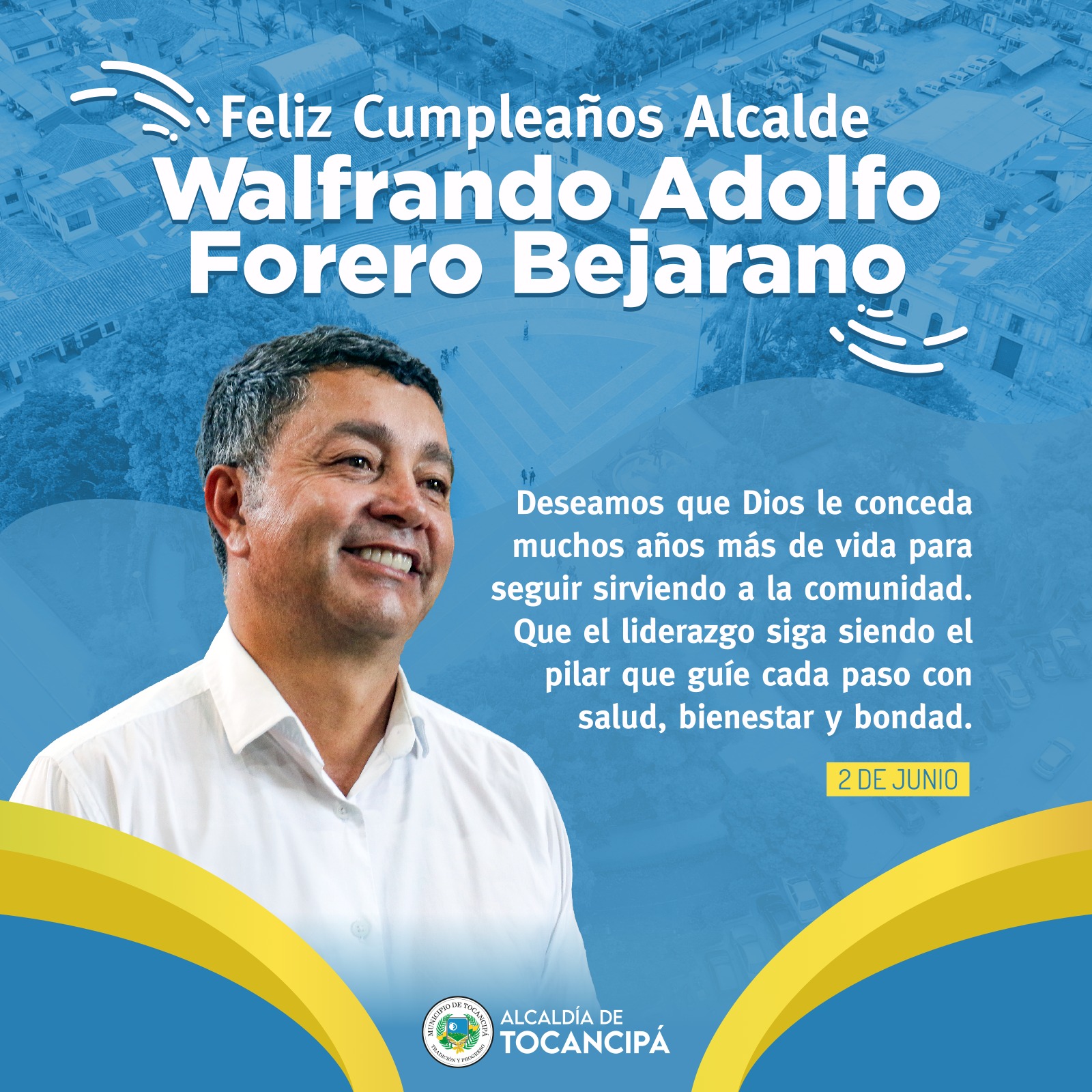 #FelizCumpleañosAlcalde | Alcalde Walfrando Forero Bejarano, en este día tan especial, todo el equipo de gobierno y muy especialmente la comunidad tocancipeña queremos desearle un ¡feliz y bendecido cumpleaños!