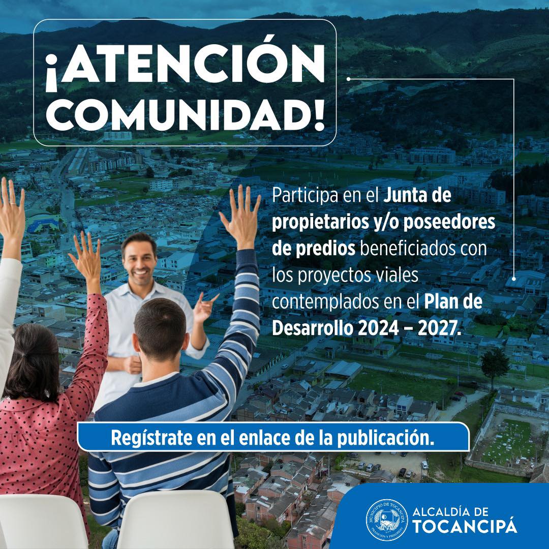 #VIAS | ¡Haz parte del cambio! Participa en la Junta de Representantes de los propietarios y/o poseedores de los proyectos viales incluidos en el Plan de Desarrollo 2024-2027.