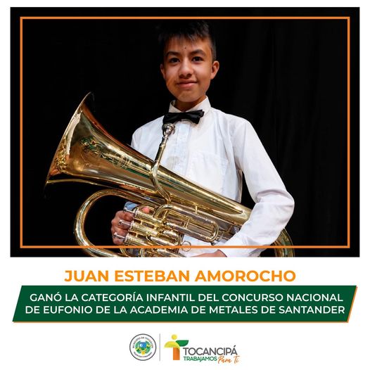 El joven de la Banda Sinfónica Infantil de Antonia Santos de Verganzo, Juan Esteban Amorocho ganó el primer puesto de la categoría Infantil virtual del Concurso Nacional de Eufonio organizado por la @Academia de Metales de Santander.