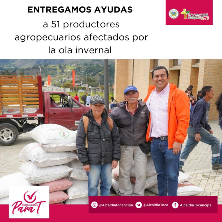 Entregamos ayudas a 51 productores agropecuarios afectados por la ola invernal