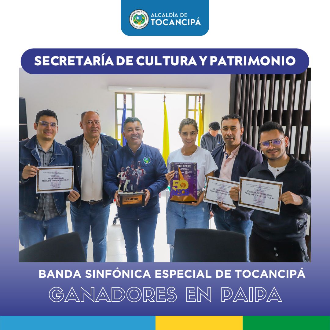 Estamos muy orgullosos de la representación de nuestra Banda Sinfónica Especial de Tocancipá, agrupación que obtuvo los 2 premios más destacados en el concurso que se llevó a cabo en Paipa (Boyacá) así: Primer Lugar en la Categoría Especial y Mejor Arreglo en la Interpretación de la obra “El Barcino” homenaje a Jorge Villamil, arreglos del maestro Cristhian López.