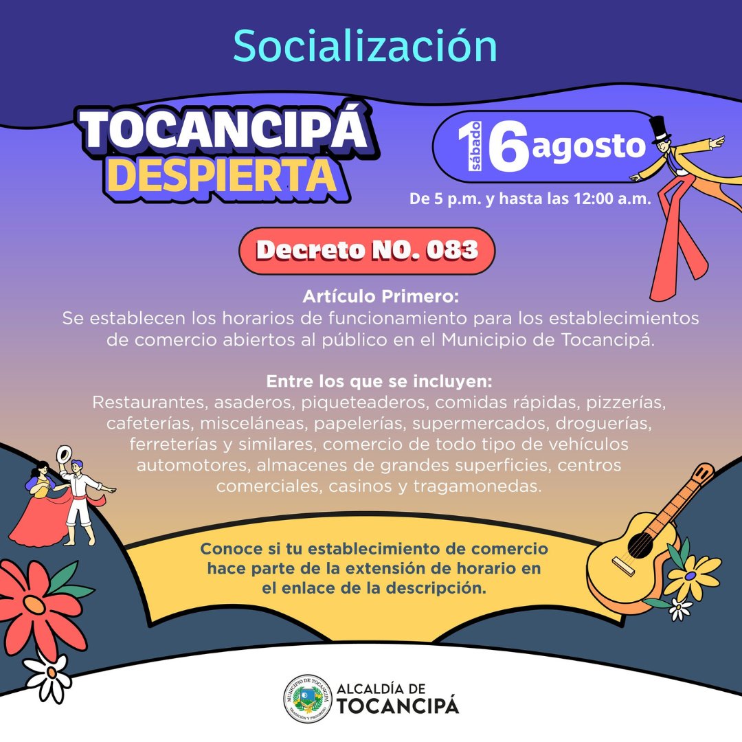Apoya el comercio, compra local y disfruta de una noche de cultura, música y gastronomía. Consulta si tu establecimiento hace parte de la medida. Ver Decreto 083 de 2025, https://www.tocancipa-cundinamarca.gov.co/.../DECRETO_083...
