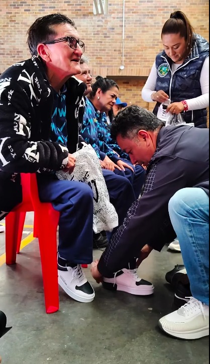Fotografía del video sobre la entrega de zapatos a los integrantes de los programas de: Adulto Mayor
