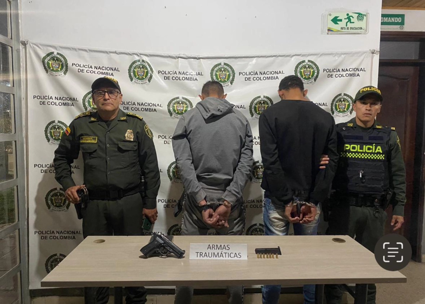 La Policía Nacional, a través de un operativo, capturó a dos ciudadanos de nacionalidad venezolana que portaban un arma traumática mientras se movilizaban en moto por la vereda La Fuente.