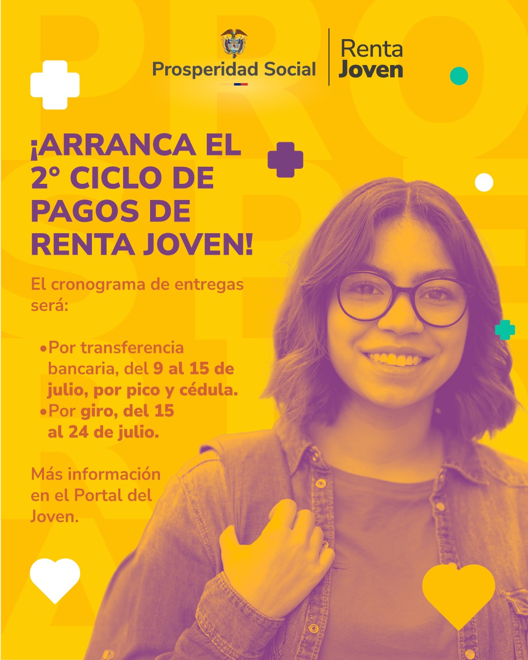 Si eres beneficiario, mantente atento a las fechas y canales de pago. Consulta todos los detalles aquí: https://jovenes.prosperidadsocial.gov.co/RentaJoven