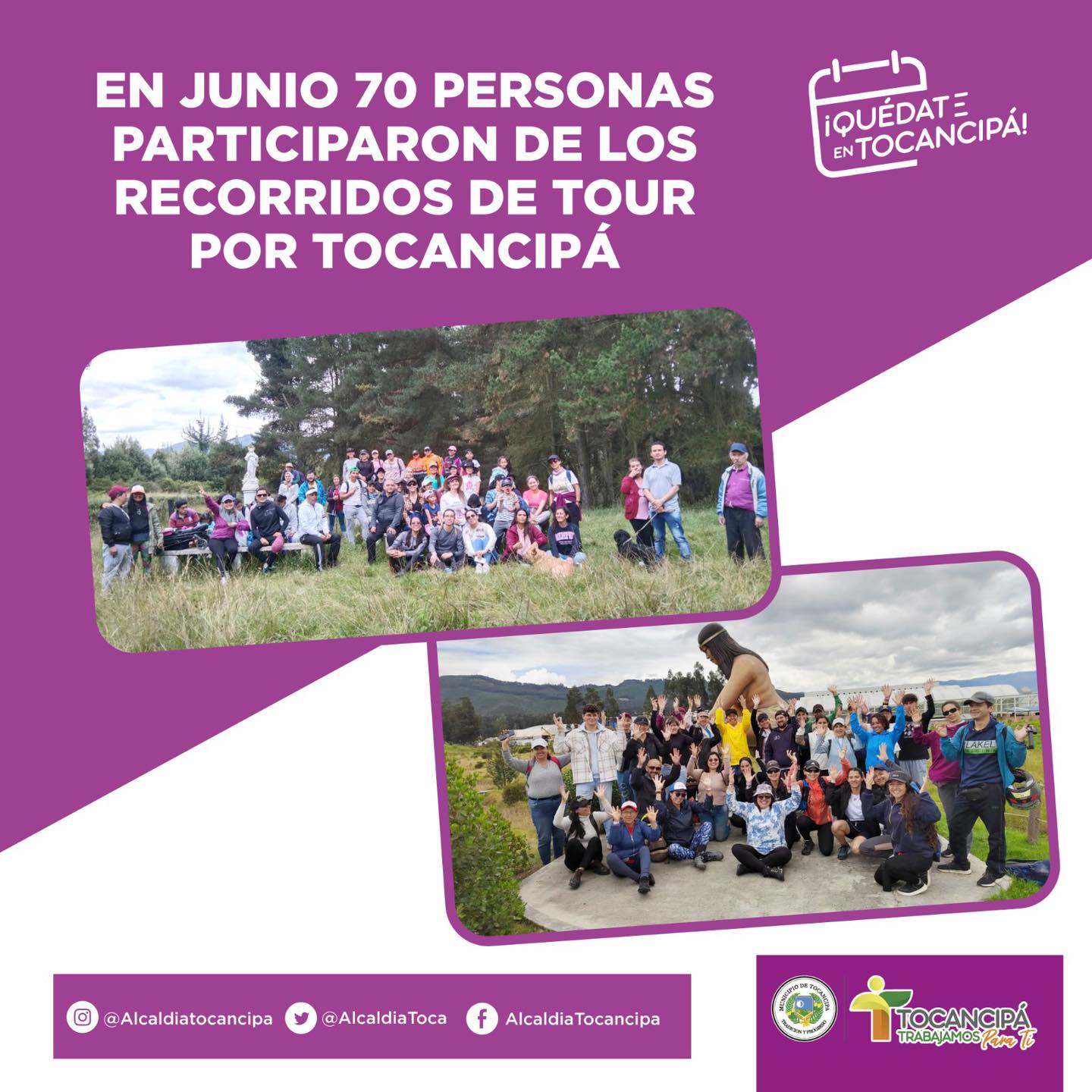En el mes de junio más de 70 personas entre residentes y visitantes disfrutaron de los recorridos turísticos guiados "De Tour por Tocancipá". Dos realizados en el circuito denominado Camino del Gone en la vereda La Fuente y uno más en el Sendero de la Memoria Muisca en la Fundación Parque Jaime Duque - Ecoparque Sabana.