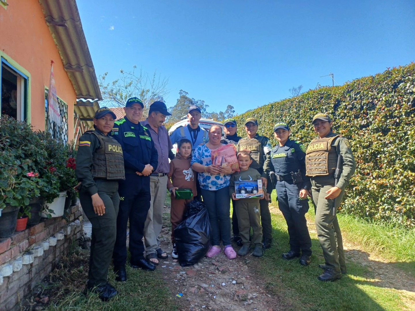 La Policía Comunitaria de Infancia y Adolescencia y de Vigilancia recibieron el año nuevo realizando una gran labor en la vereda La Fuente. Allí entregaron mercados, regalos y ropa a una familia que necesita apoyo.