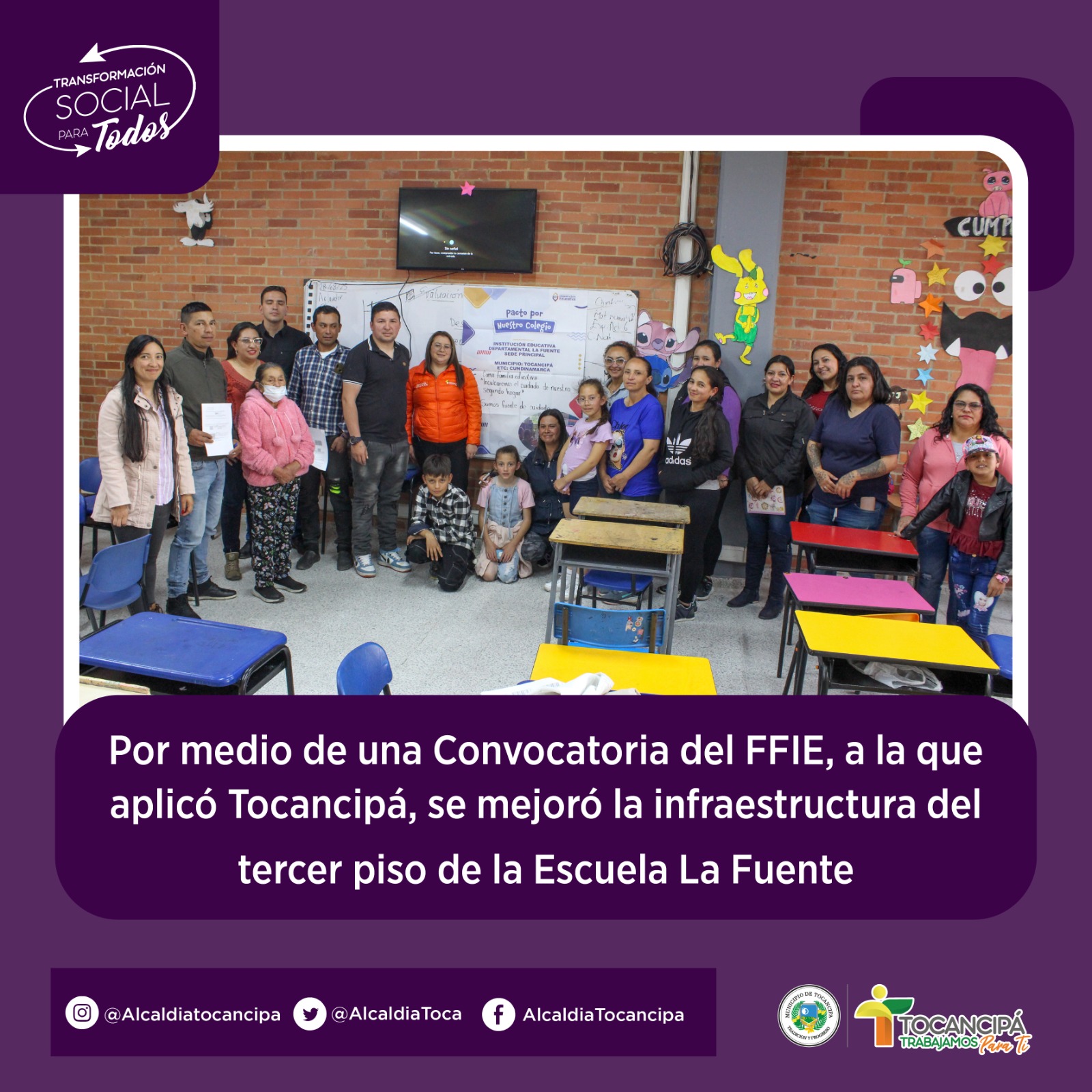 La Secretaría de Educación recibió con agrado la obra de mejoramiento a la infraestructura del FFIE, Fondo de Financiamiento de la Infraestructura Educativa en la ala derecha del tercer piso de la Escuela la Fuente en Tocancipá.