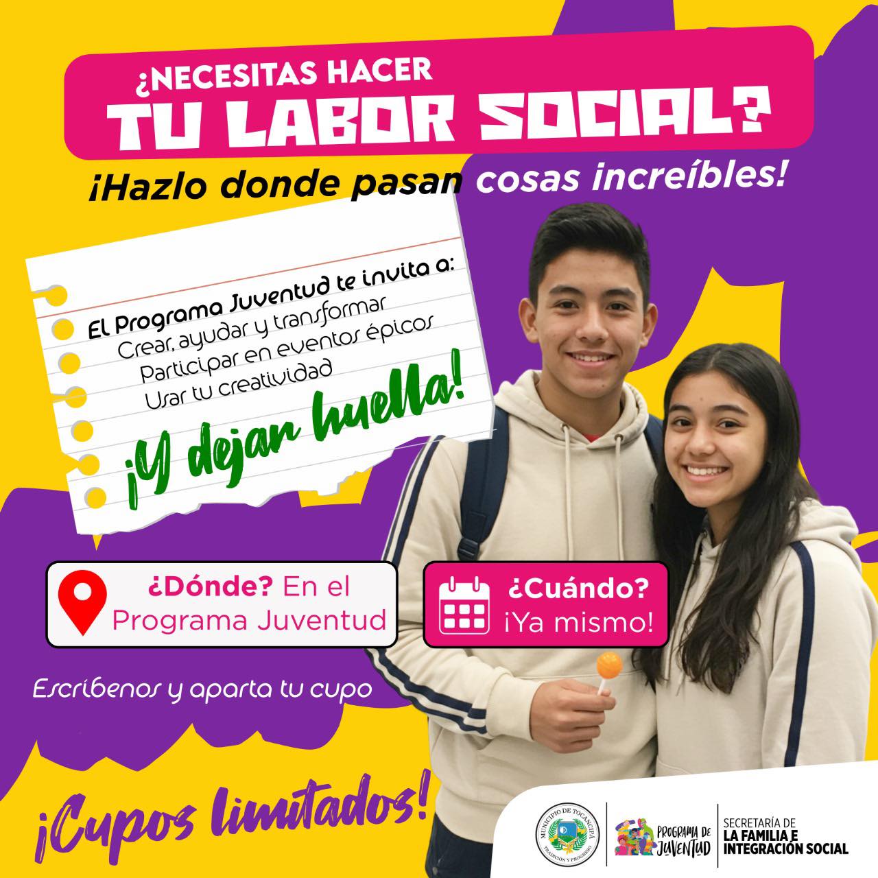 Pieza gráfica sobre la convocatoria para realizar la labor social en el Programa Juventud