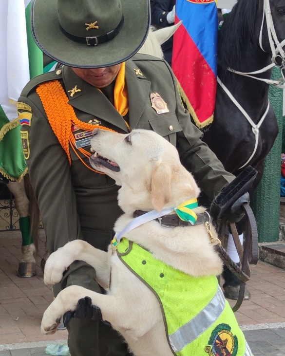 Foto Policía guía con su perro entrenado para la Policía Nacional de Colombia