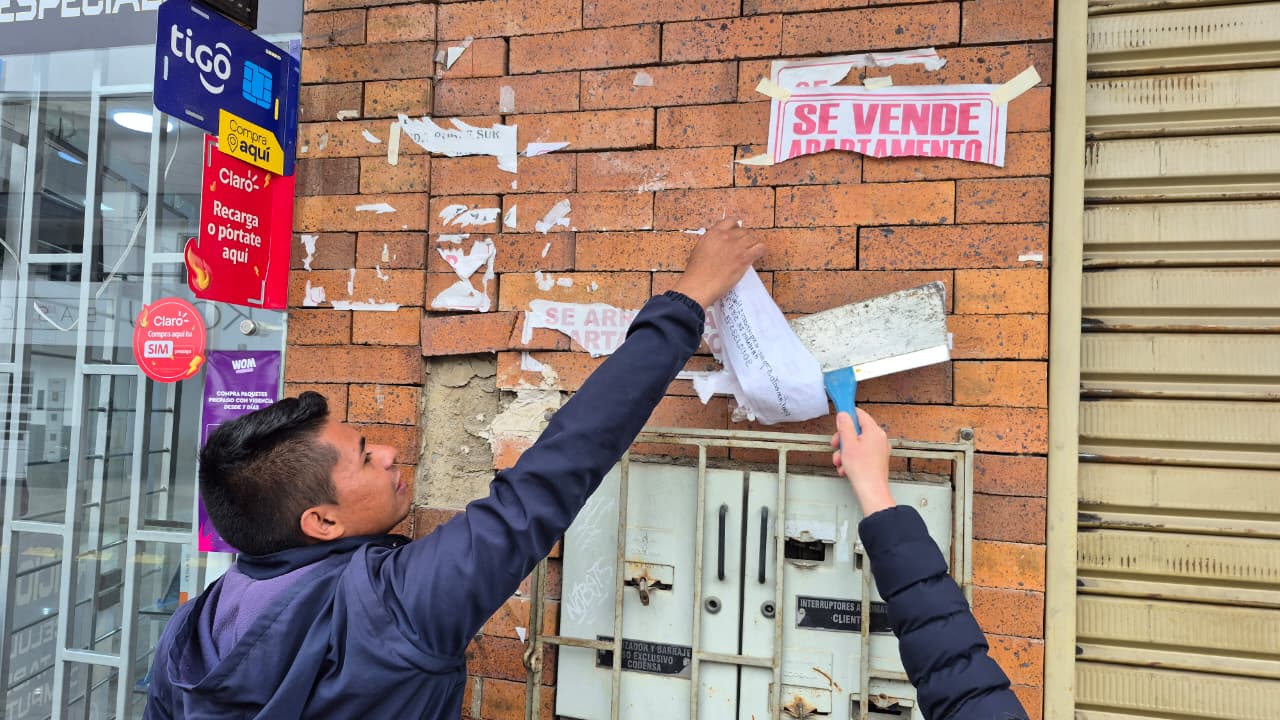 Fotografía del equipo de la Secretaría de Gobierno retirando publicidad de espacios públicos.