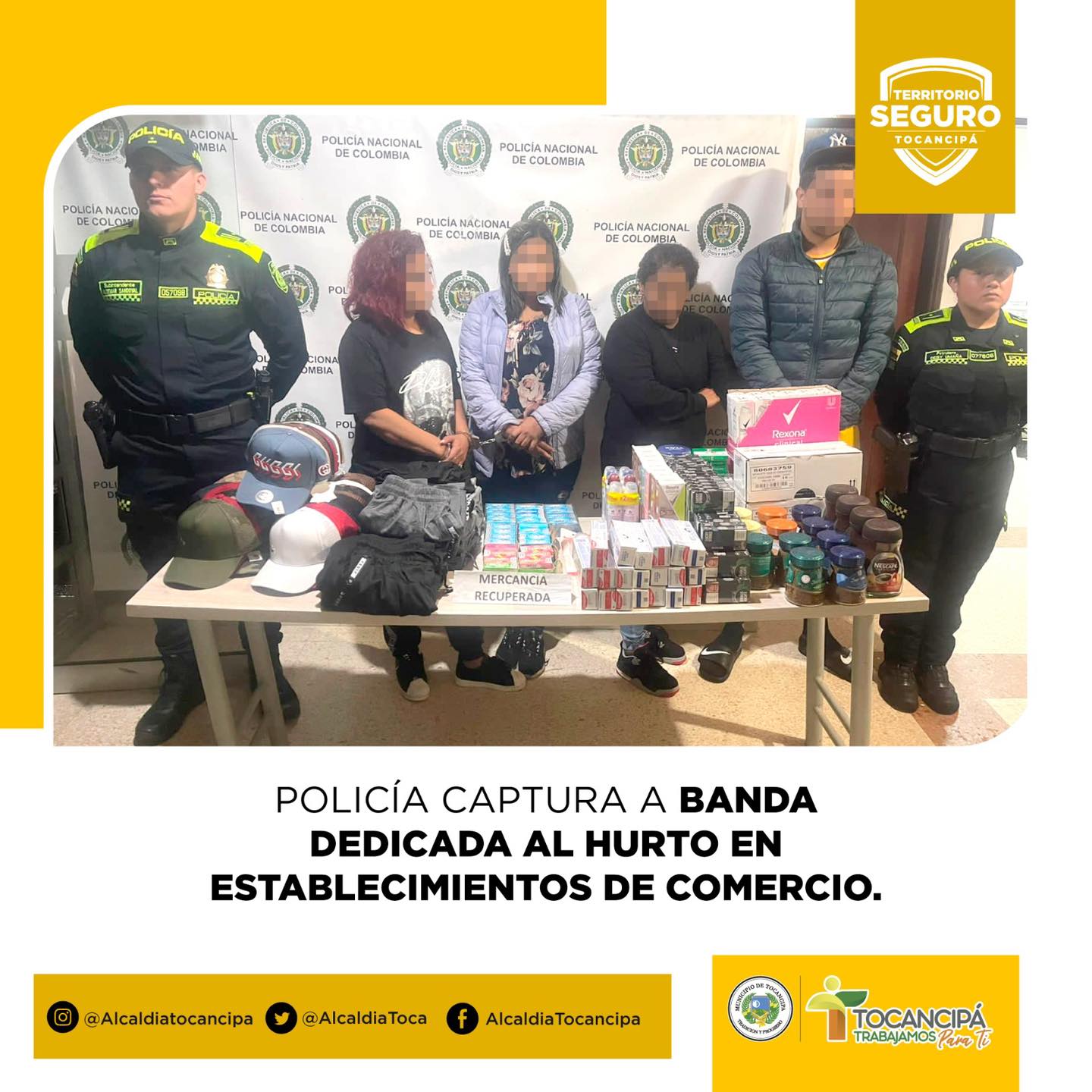 Policía captura a banda dedicada al hurto en establecimientos de comercios