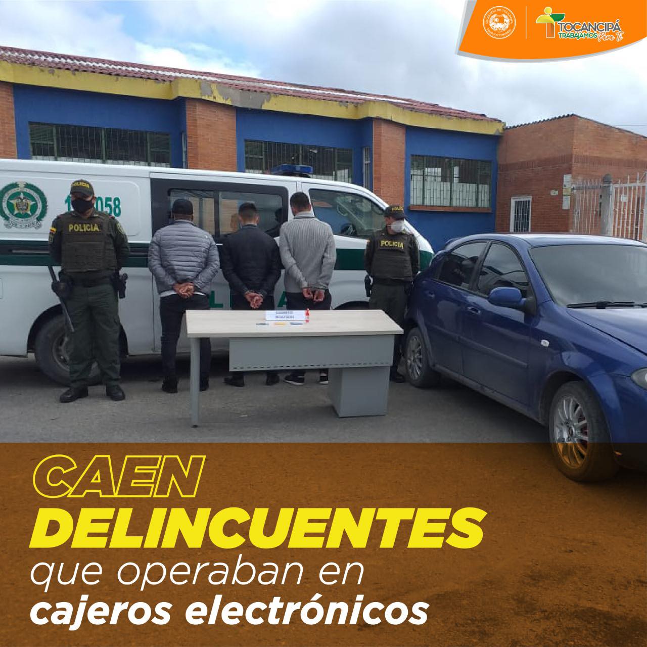 La Policía Nacional capturó en Tocancipá a tres sujetos que estarían manipulando los cajeros electrónicos con el fin de robar el dinero de las personas.