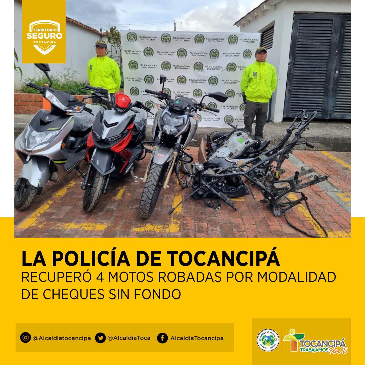 La policía de Tocancipá recupero cuatro motos robadas por modalidad cheque sin fondos