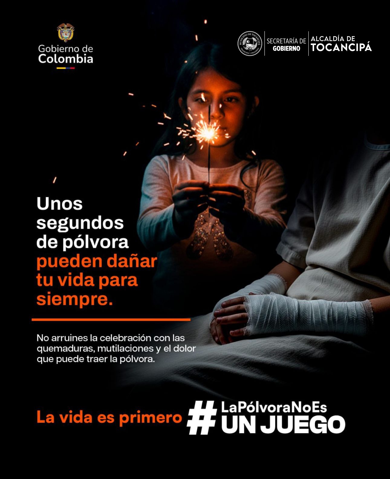 #NavidadEnModoSeguro I #LaPólvoraNoEsUnJuego Esta iniciativa busca que las festividades de Navidad y Año Nuevo estén enmarcadas en la felicidad de nuestros niños y la unión familiar de los tocancipeños, eliminando de estas festividades el uso de la pólvora para evitar consecuencias negativas y hechos que lamentar.