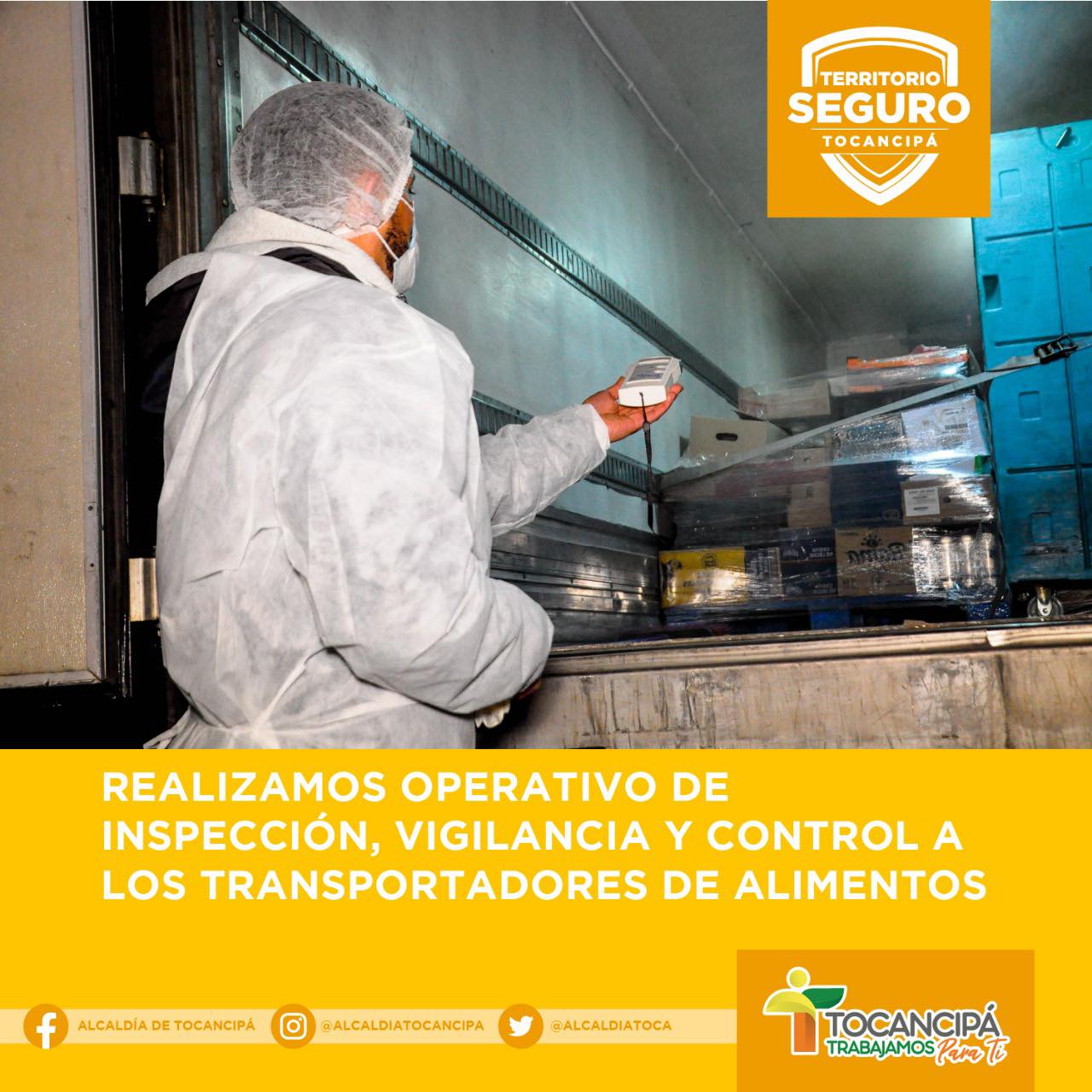 En un trabajo conjunto del Gobierno Municipal y los equipos de las secretarías de Gobierno y Salud, con el acompañamiento de la Policía Nacional realizamos un operativo de inspección, vigilancia y control a los transportadores de alimentos para verificar la documentación requerida y el origen seguro de los alimentos con el fin de garantizar la inocuidad y legalidad de los productos que se consumen en nuestros hogares.