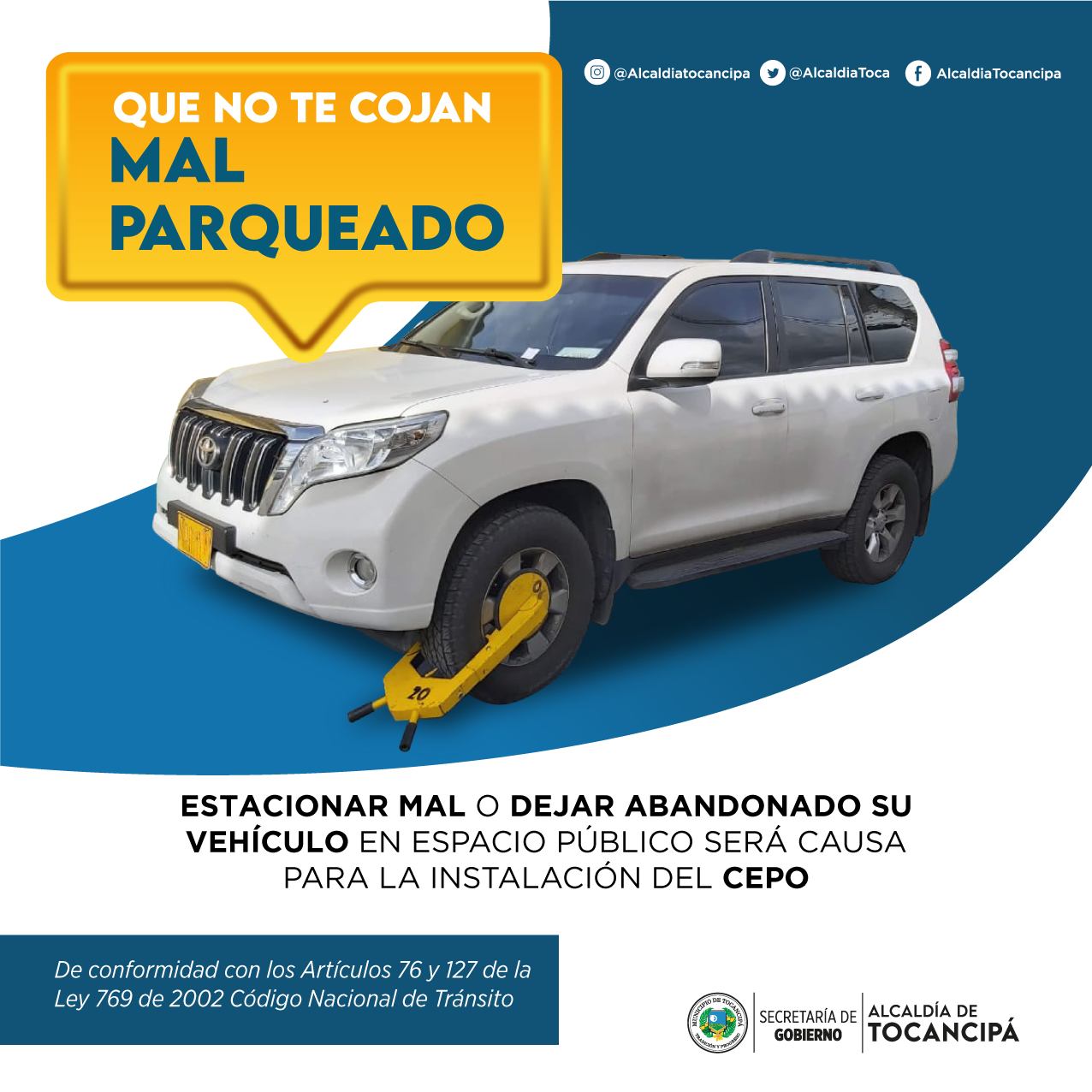 Regresa la estrategia de instalación del sistema de cepos, a vehículos parqueados en lugares prohibidos, o a los que sean detectados en situación de abandono en todos los sectores de Tocancipá.