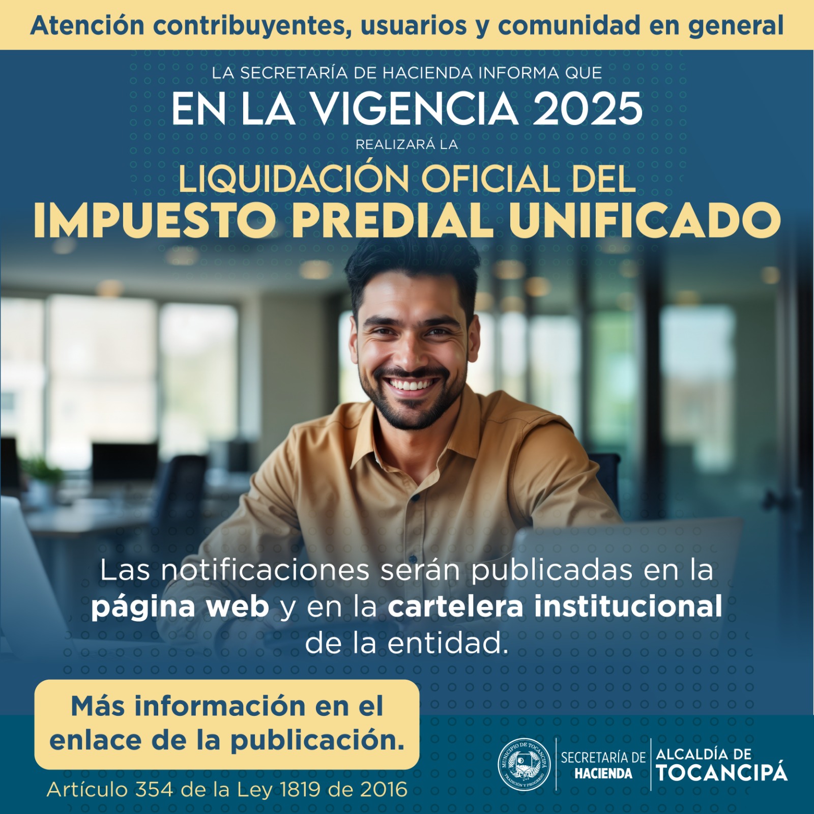 Pieza gráfica sobre liquidaciones oficiales del Impuesto Predial Unificado en Tocancipá
