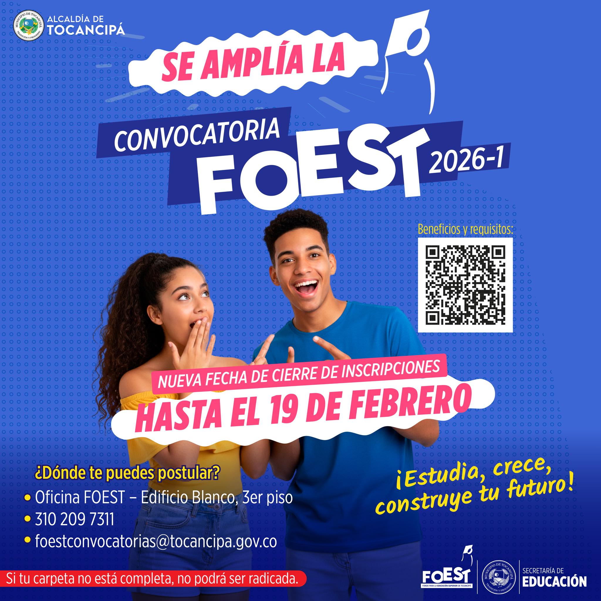 #FOEST | ¡Atención Tocancipá! Se amplía la Convocatoria FOEST 2026-1
