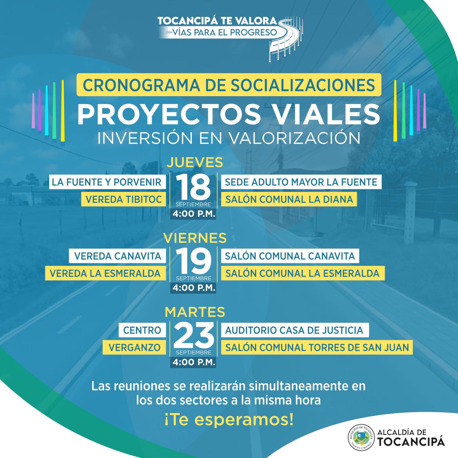 #Infraestructura | La Alcaldía de Tocancipá te invita a las socializaciones del Plan de Obras Vial. Tu participación es clave para construir el progreso que nuestra comunidad necesita.