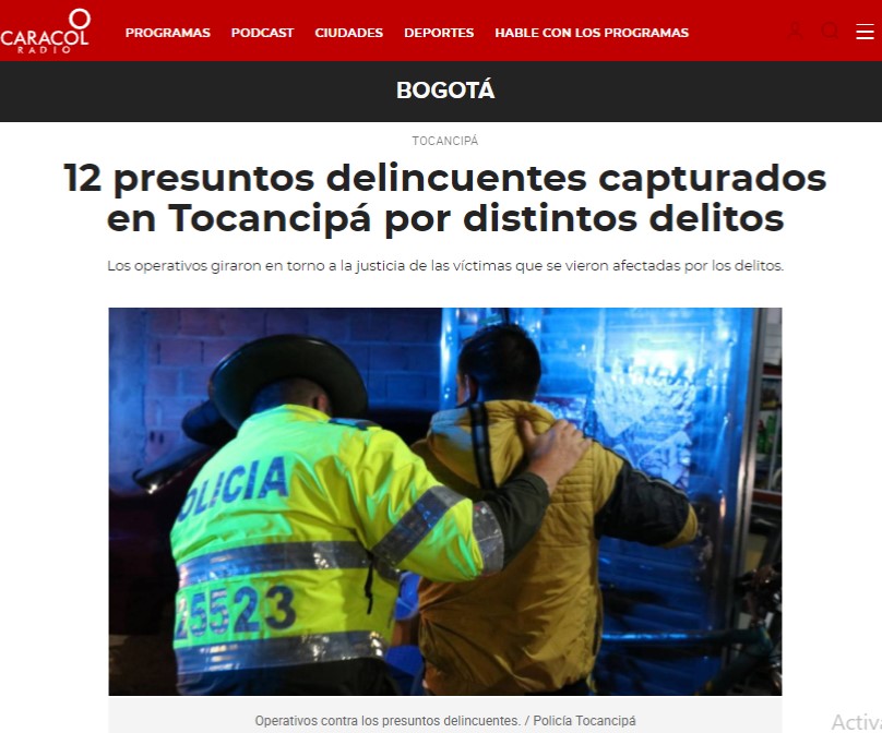 12 presuntos delincuentes capturados en Tocancipá por distintos delitos- Caracol Radio