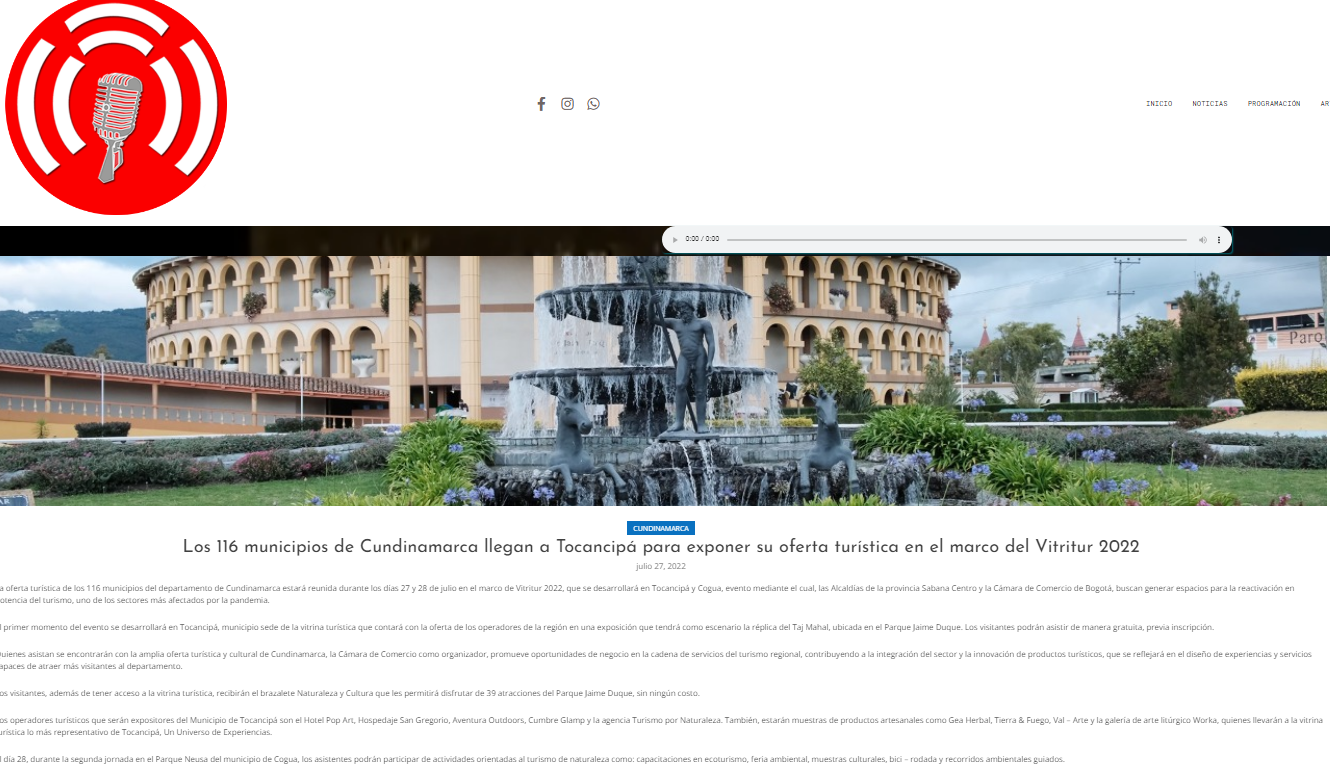 Los 116 municipios de Cundinamarca llegan a Tocancipá para exponer su oferta turística en el marco d