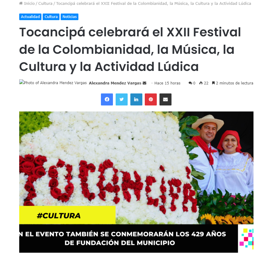 Tocancipá celebrará el XXII Festival de la Colombianidad, la Música, la Cultura y la Actividad Lúdic