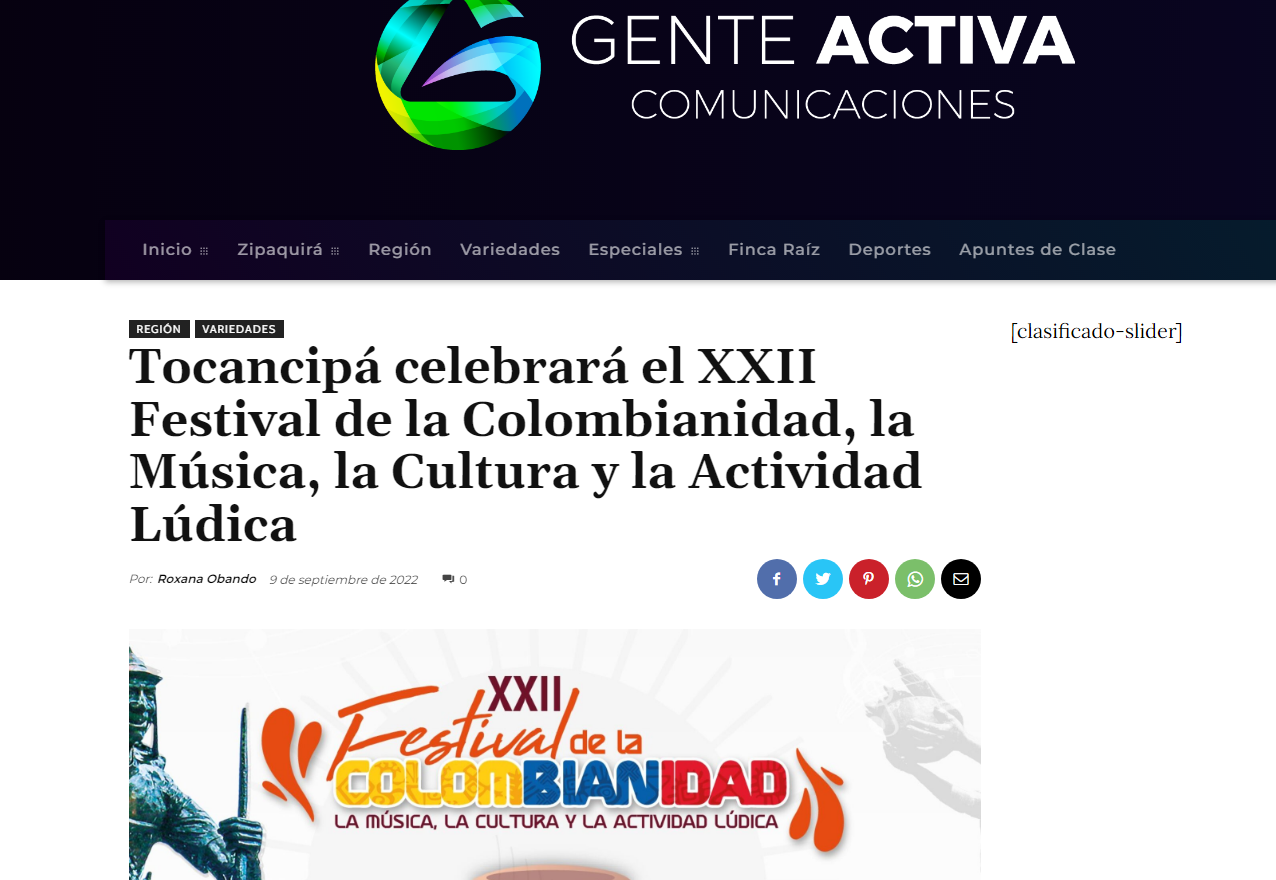 Tocancipá celebrará el XXII Festival de la Colombianidad, la Música, la Cultura y la Actividad Lúdic